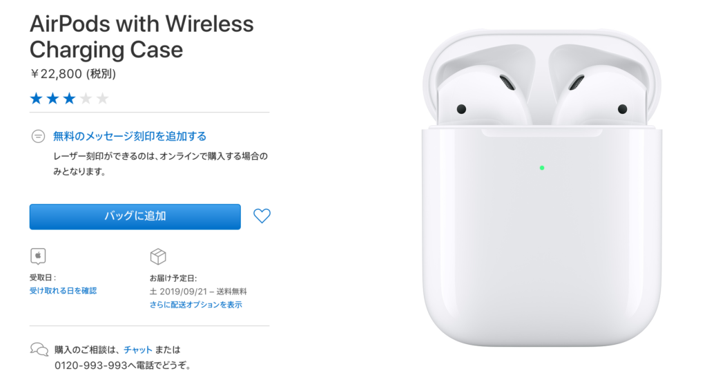 AirPods with Wireless Charging Case:24時間以上の再生時間3、最大18時間の連続通話時間8