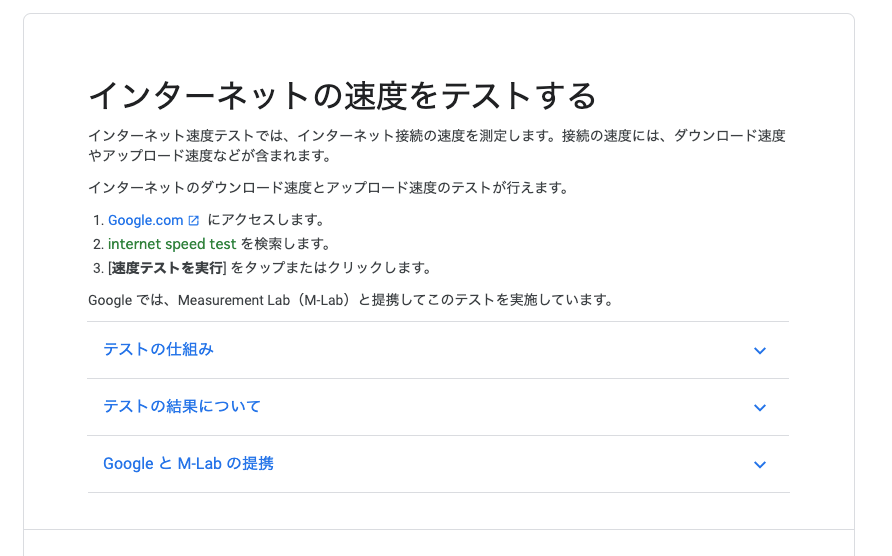 Google では、Measurement Lab(M-Lab)と提携してこのテストを実施しています。